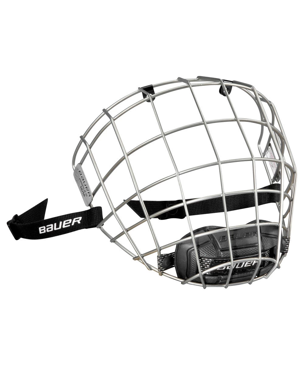 The Bauer Profile III Facemask features stainless steel construction for lightweight play. The oval wire design gives the player enhanced vision and has a classic design profile with flat shape. The chin cup is a dual density floating chin cup with moisture channels.