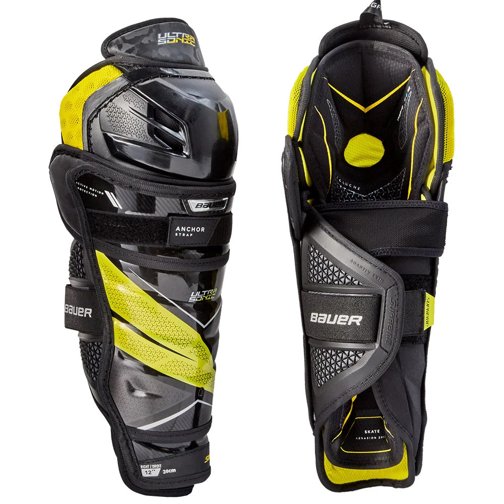 Maximum mobility with great protection: AMP technology gives the shin guard our patented split cap design, engineered to provide optimal flex during the skating stride, allowing for more flex in the knee area and compression in the ankle portion.