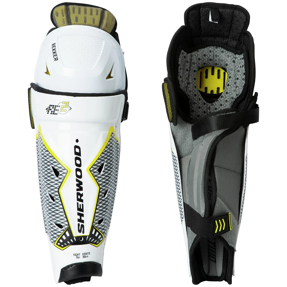 Sherwood REKKER Element 2 Shin Pads offer enhanced protection with an integrated MD foam thigh protection and SW diamond Aerofoam slash guard. Anatomically molded shin and knee cap as well as a 3 point calf closure system ensure a precise fit every game